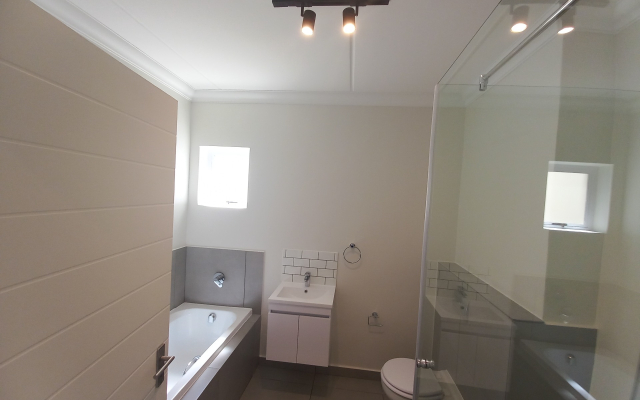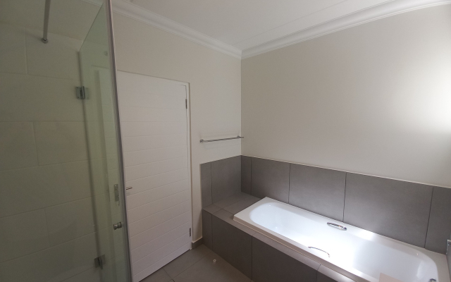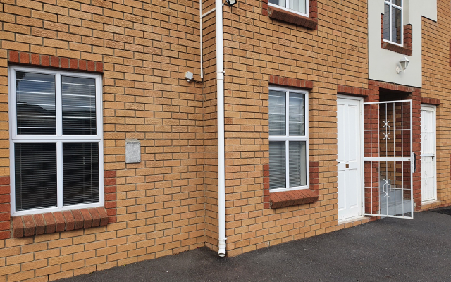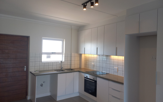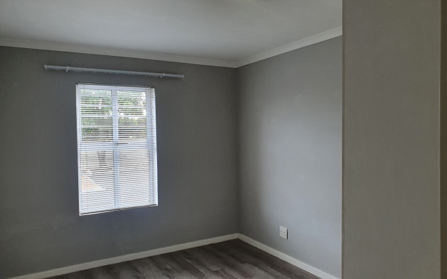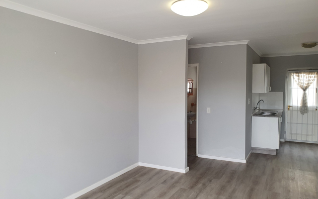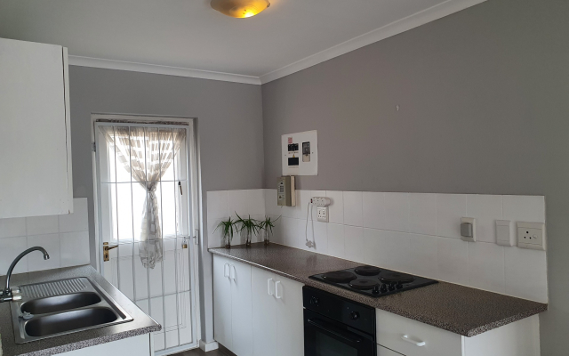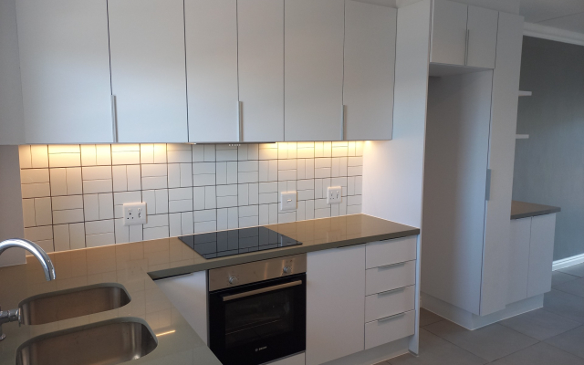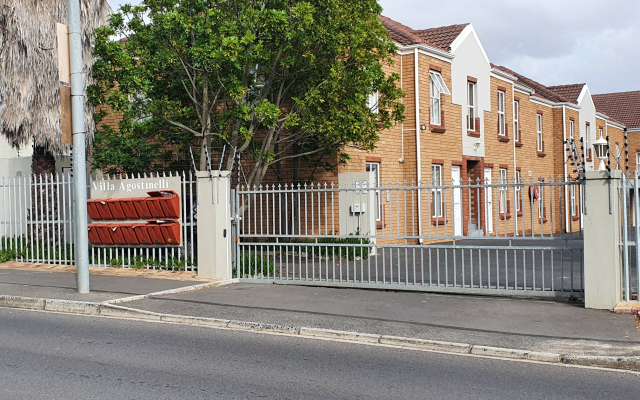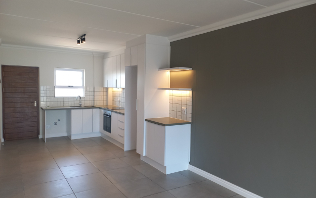 This lovely ground floor apartment is in the gated complex of Villa Agostinelli, Durbanville Central and offers 2 bedrooms with built-in cupboards, open plan kitchen with built-in cupboards and under counter oven & hob. The kitchen door leads to a paved, enclosed courtyard and washing lines.